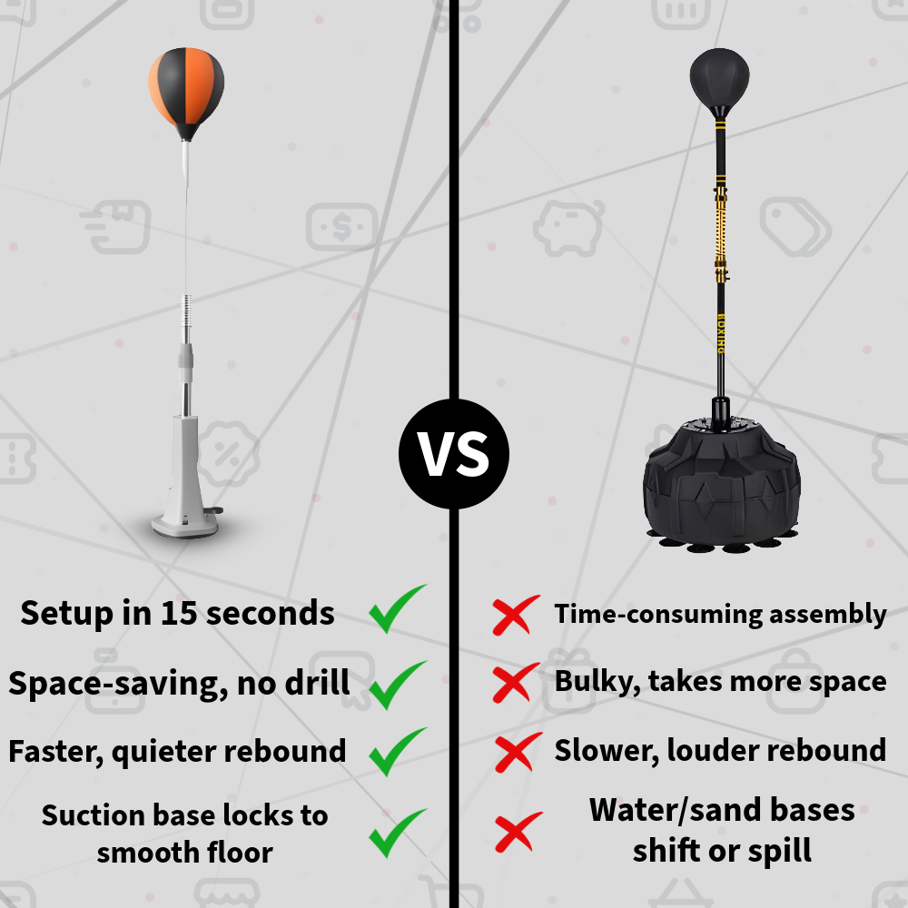 No. Punchery is built with a weighted, anti-slip base and reinforced spring, which keeps it stable during fast punches. You can go hard without chasing it around the room.